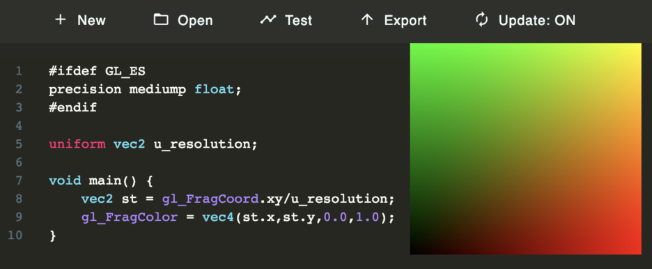 gl_FragColor = vec4(st.x,st.y,0.0,1.0);