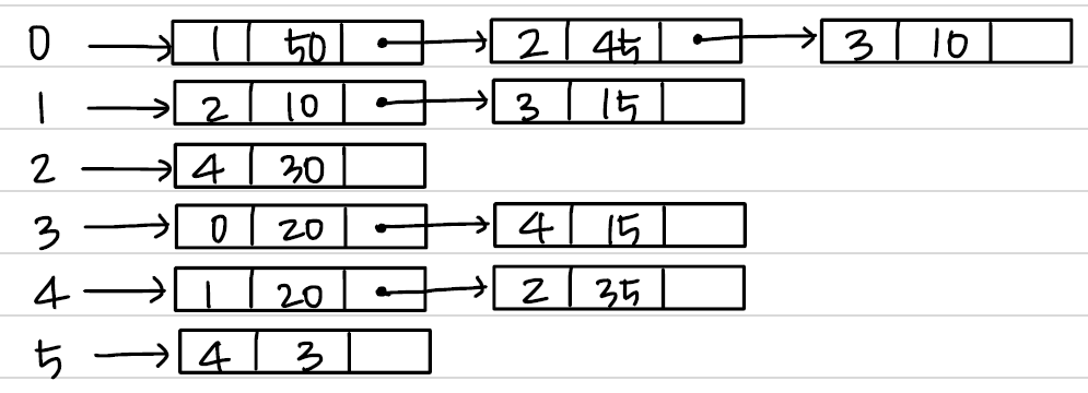 (c) 아래 graph를 adjaceny list로 표현한 것을 그리시오.