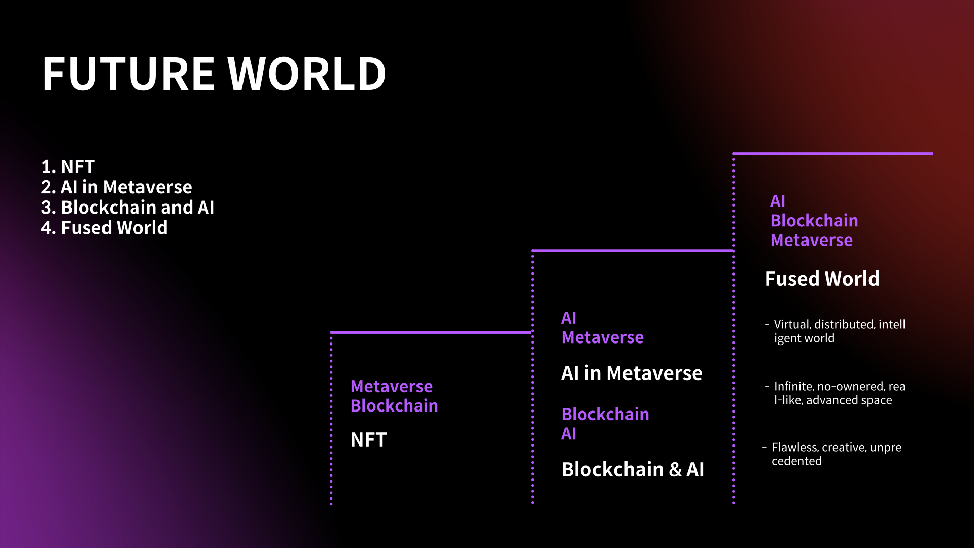 The future world in which the three technologies are fused is a virtual world, a distributed world, and an intelligent world. It is possible to create an infinite space, a space without an owner, a space resembling the real world but more advanced. Everything in that space will be flawless, creative and unprecedented. The world will be technological and paradoxically primary.