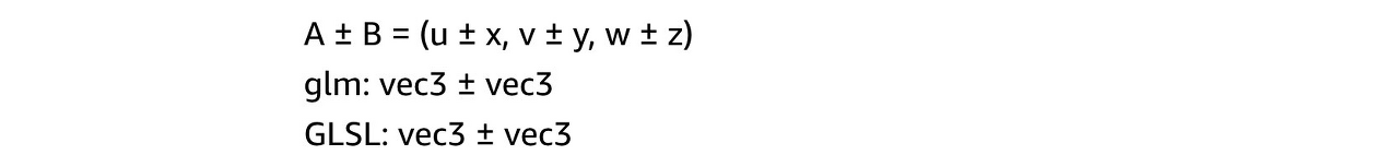 GLM과 GLSL에서 사용 가능한 연산은 다음과 같습니다.