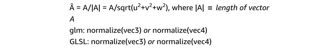 또 다른 유용한 연산에는 magnitude(크기 구하기, GLSL과 GLM에서는 length() 메소드로 사용), reflection(반사), refraction(굴절) 등이 있습니다.
