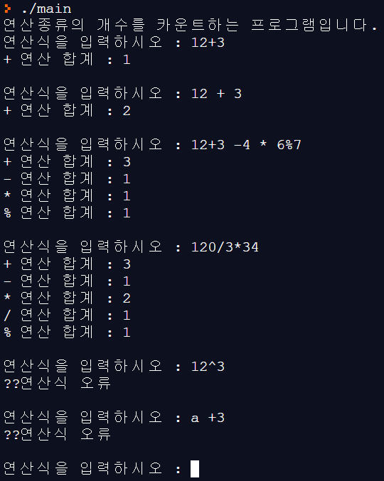 printf("연산종류의 개수를 카운트하는 프로그램입니다.\n");