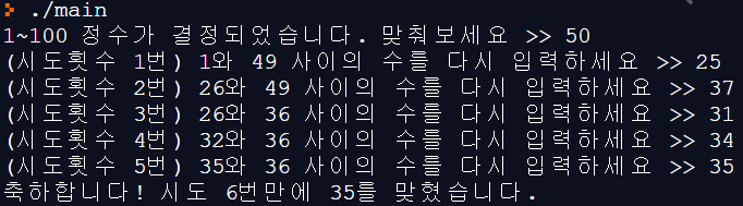 printf("1~100 정수가 결정되었습니다. 맞춰보세요 >> ");