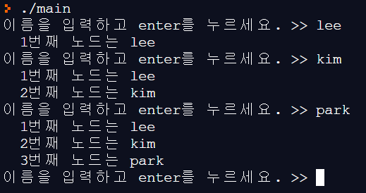 printf("%3d번째 노드는 %s\n", ++cnt, nextNode->name);